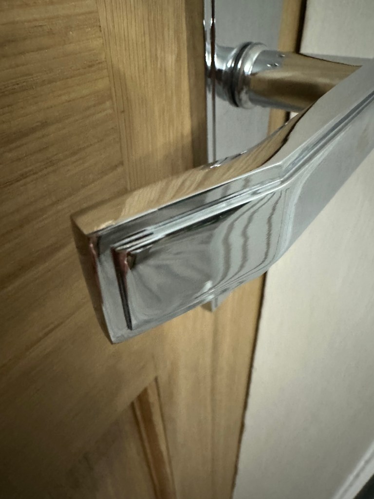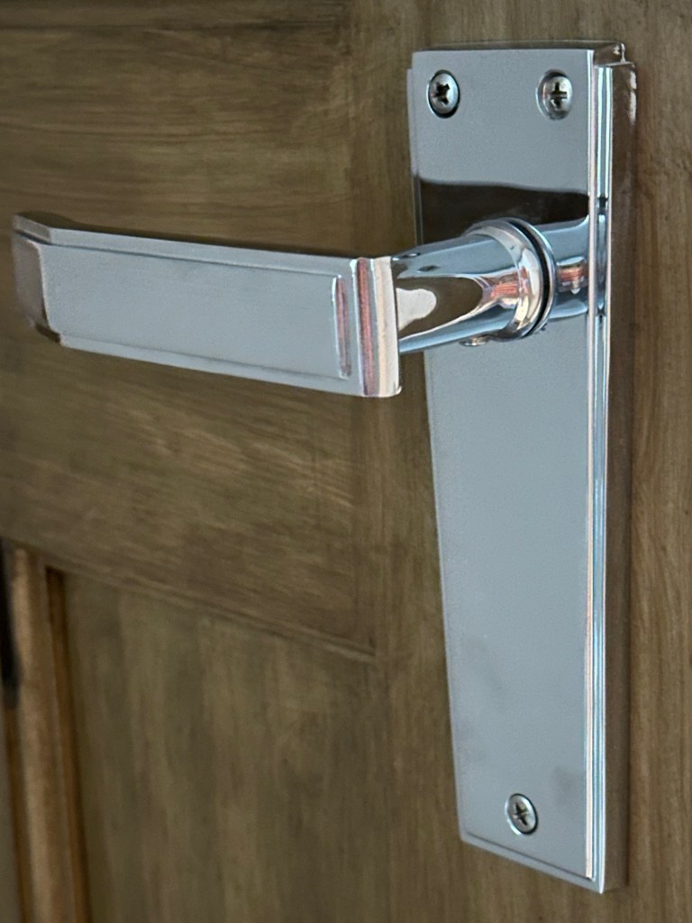 Finally, the design which caught my eye was the Jedo Deco Suite Lever on Plate designed and produced by Frelan Hardware in England. When my joiner was fitting the hardware to my doors he was impressed with the quality. In my opinion, they are not only beautiful to look at but comfortable to hold and use. I chose the polished chrome version – which seemed most in keeping with the Art Deco theme – and they are extremely easy to keep fingerprint-free and shiny with a light wipe using a dry, soft cloth.