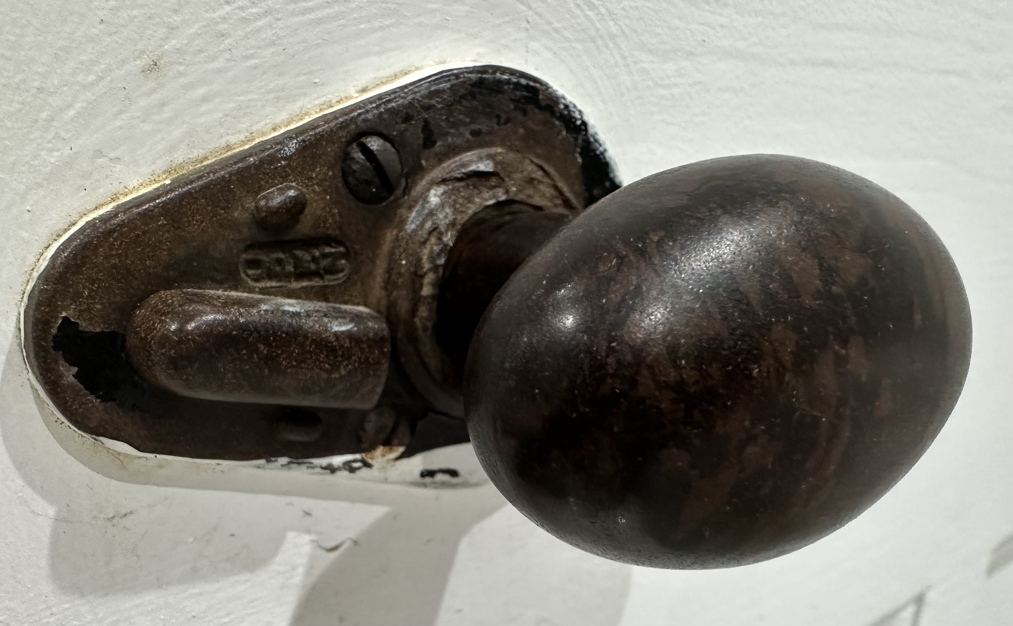 When it came to choosing interior door handles for my home, the decision for the doors on the upper floor – bedrooms and bathroom – was easy. The original door knobs from the mid-1930s were still in place and functioning. Some were covered in layers of paint which occupants of the house had applied during those intervening years while my family lived elsewhere but I felt confident they could be restored to reveal the dark brown Bakelite beneath.