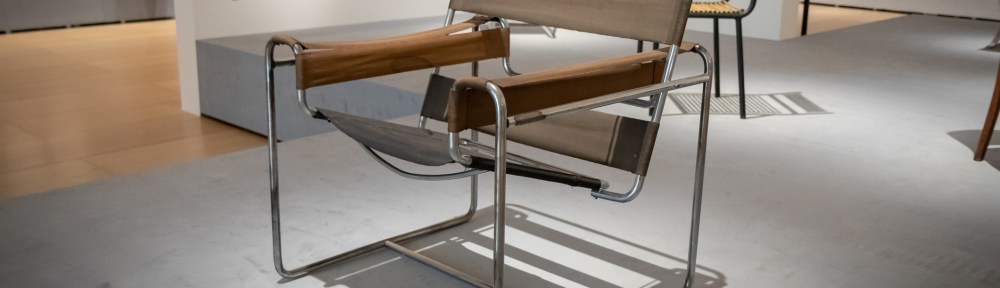 As an example, while walking through a furniture display in a local department store (John Lewis), I noticed an armchair that seemed to be a wholly contemporary design at first glance. However, something felt familiar about its shape and its angles. I vaguely remembered an image I’d seen during my course on the Bauhaus – the school of design, architecture and applied arts that was active in Germany from 1919 to 1933. As soon as I got home, I pulled out my Bauhaus file with all its notes and printouts and there it was. Not the plush, upholstered piece I’d seen in John Lewis but a metal skeleton of a chair – the Model B3 chair – (or Wassily chair, as it came to be known) designed by Marcel Breuer in the mid 1920s.